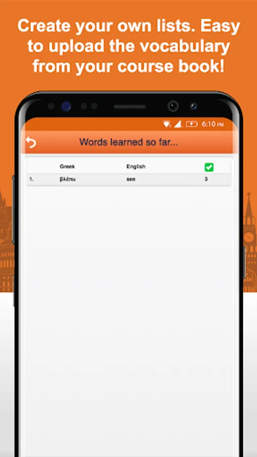 ► Add your own vocabulary lists: If you are taking a course at a school, university or private academy, you can add the words from your textbook and learn them here instead of looking them up in a dictionary.
