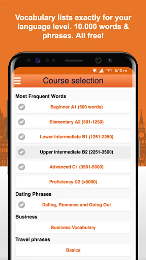 ► Add your own vocabulary lists: If you are taking a course at a school, university or private academy, you can add the words from your textbook and learn them here instead of looking them up in a dictionary.