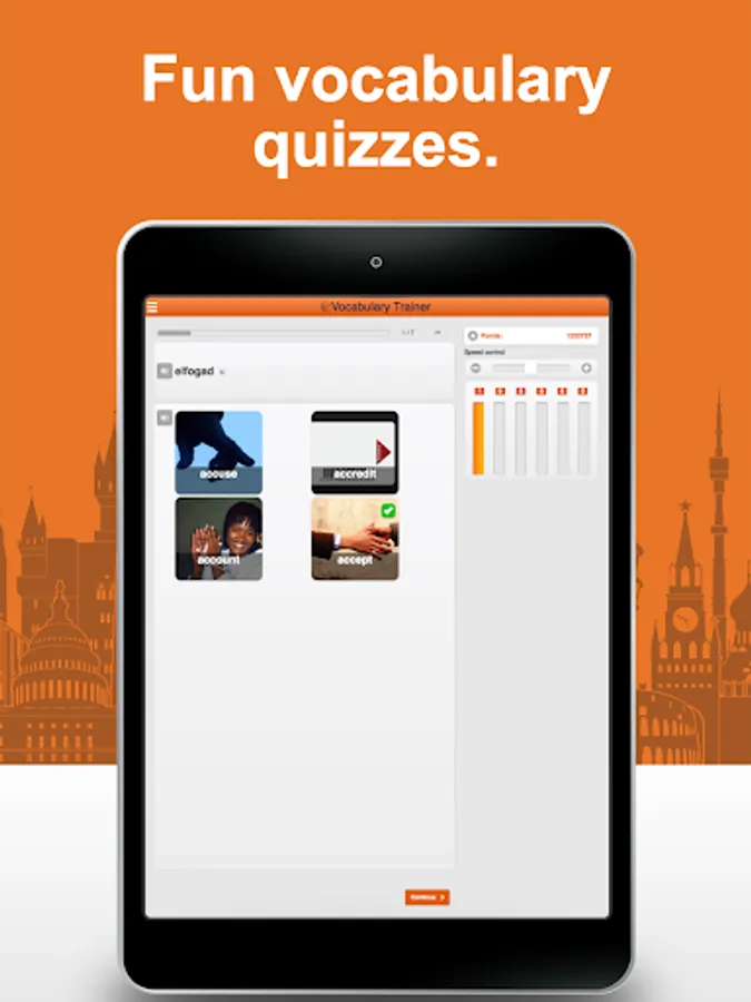 ► Accelerated Learning Methodology: Research in the field of vocabulary learning showed that spaced repetition language training gives the best results for memorization in language lessons. Plus optional relaxation music can increase student memory capacity (superlearning).