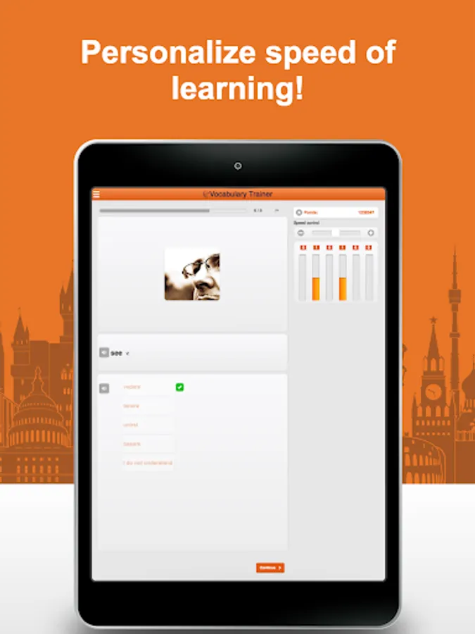 ► Accelerated Learning Methodology: Research in the field of vocabulary learning showed that spaced repetition language training gives the best results for memorization in language lessons. Plus optional relaxation music can increase student memory capacity (superlearning).