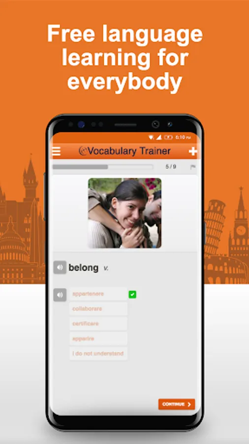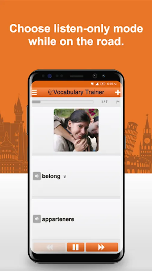 • 100% Free Italian lessons for beginners, advanced learners, adults and kids. Build a solid vocabulary in just 10 mins per day. Pioneering sleep learning function designed with leading researchers. Learn the most frequent Italian words and travel phrases quickly, before your holidays. Proven methodology for accelerated and stress-free learning of Italian. Over 10.000 words and phrases with images and quality audio. More than any other app! Learn vocabulary while driving, running or doing housework in listening-only mode.