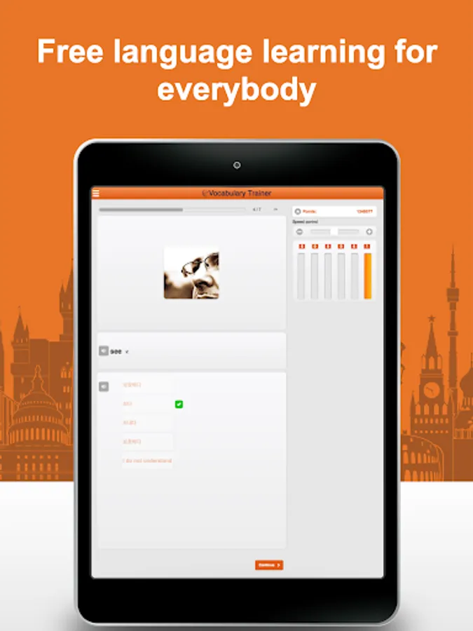 ► Accelerated Learning Methodology: Research in the field of vocabulary learning showed that spaced repetition language training gives the best results for memorization in language lessons. Plus optional relaxation music can increase student memory capacity (superlearning).