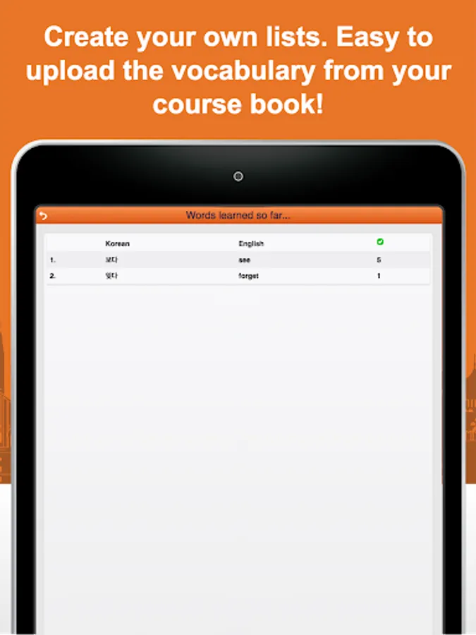 ► Add your own vocabulary lists: If you are taking a course at a school, university or private academy, you can add the words from your textbook and learn them here instead of looking them up in a dictionary.