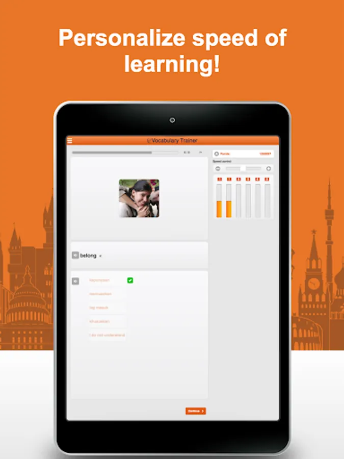 ► Accelerated Learning Methodology: Research in the field of vocabulary learning showed that spaced repetition language training gives the best results for memorization in language lessons. Plus optional relaxation music can increase student memory capacity (superlearning).