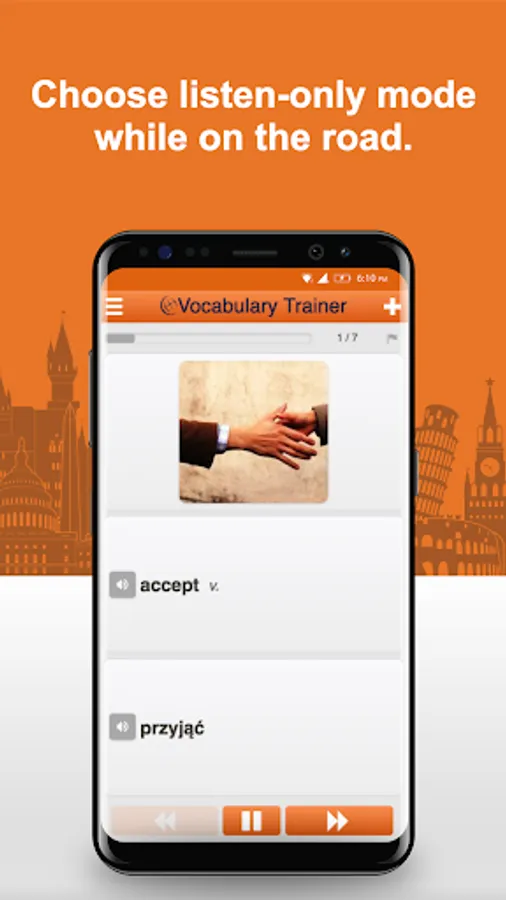 • 100% Free Polish lessons for beginners, advanced learners, adults and kids. Build a solid vocabulary in just 10 mins per day. Pioneering sleep learning function designed with leading researchers. Learn the most frequent Polish words and travel phrases quickly, before your holidays. Proven methodology for accelerated and stress-free learning of Polish. Over 10.000 words and phrases with images and quality audio. More than any other app! Learn vocabulary while driving, running or doing housework in listening-only mode.