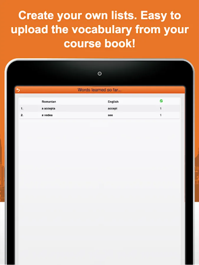 ► Add your own vocabulary lists: If you are taking a course at a school, university or private academy, you can add the words from your textbook and learn them here instead of looking them up in a dictionary.