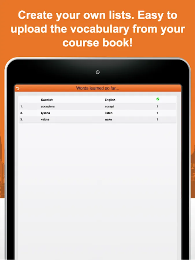 • 100% Free Swedish lessons for beginners, advanced learners, adults and kids. Build a solid vocabulary in just 10 mins per day. Pioneering sleep learning function designed with leading researchers. Learn the most frequent Swedish words and travel phrases quickly, before your holidays. Proven methodology for accelerated and stress-free learning of Swedish. Over 10.000 words and phrases with images and quality audio. More than any other app! Learn vocabulary while driving, running or doing housework in listening-only mode.