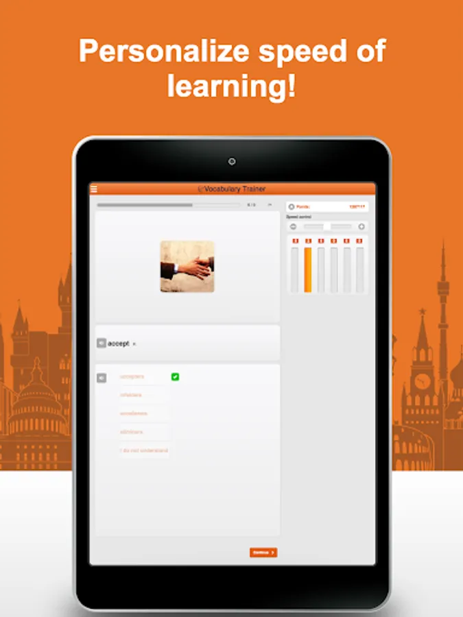 ► Accelerated Learning Methodology: Research in the field of vocabulary learning showed that spaced repetition language training gives the best results for memorization in language lessons. Plus optional relaxation music can increase student memory capacity (superlearning).