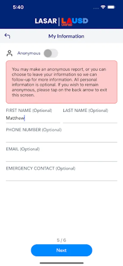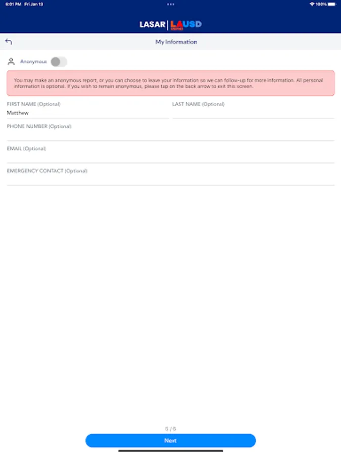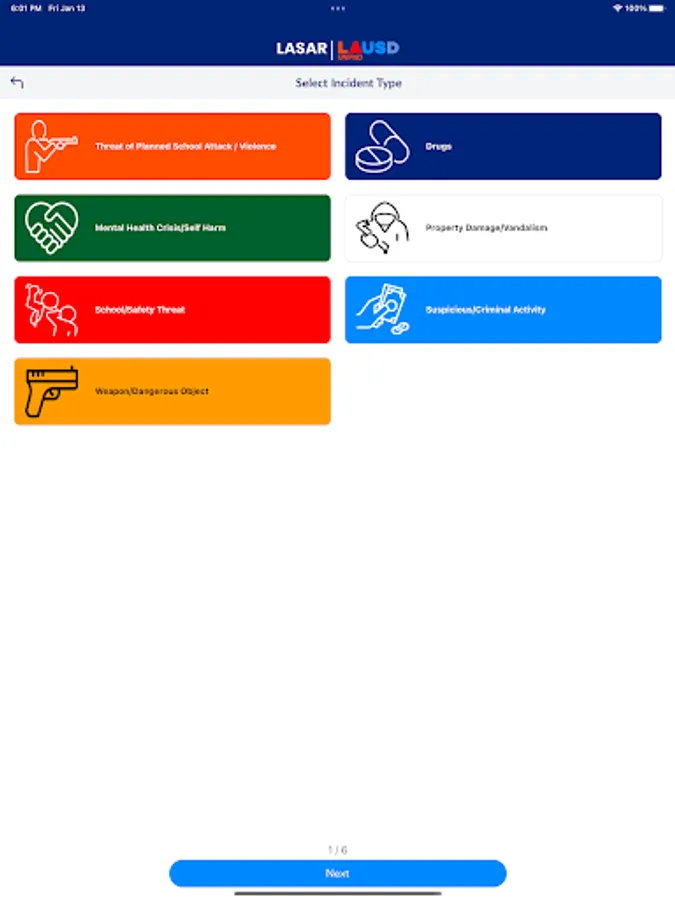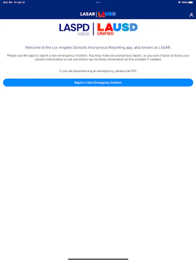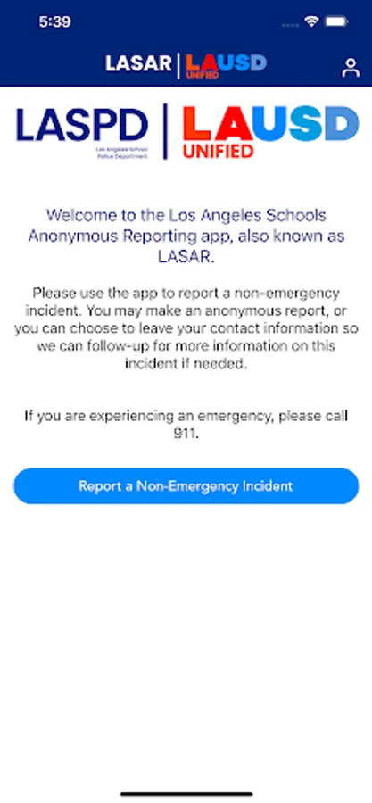 Los Angeles Schools Anonymous Reporting (LASAR) application for students, parents and public to report incidents in and around Los Angeles Unified School District (LAUSD). The application is governed by LAUSD and operated by Los Angeles School Police Department.