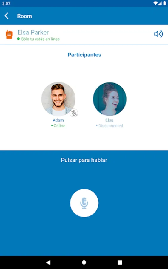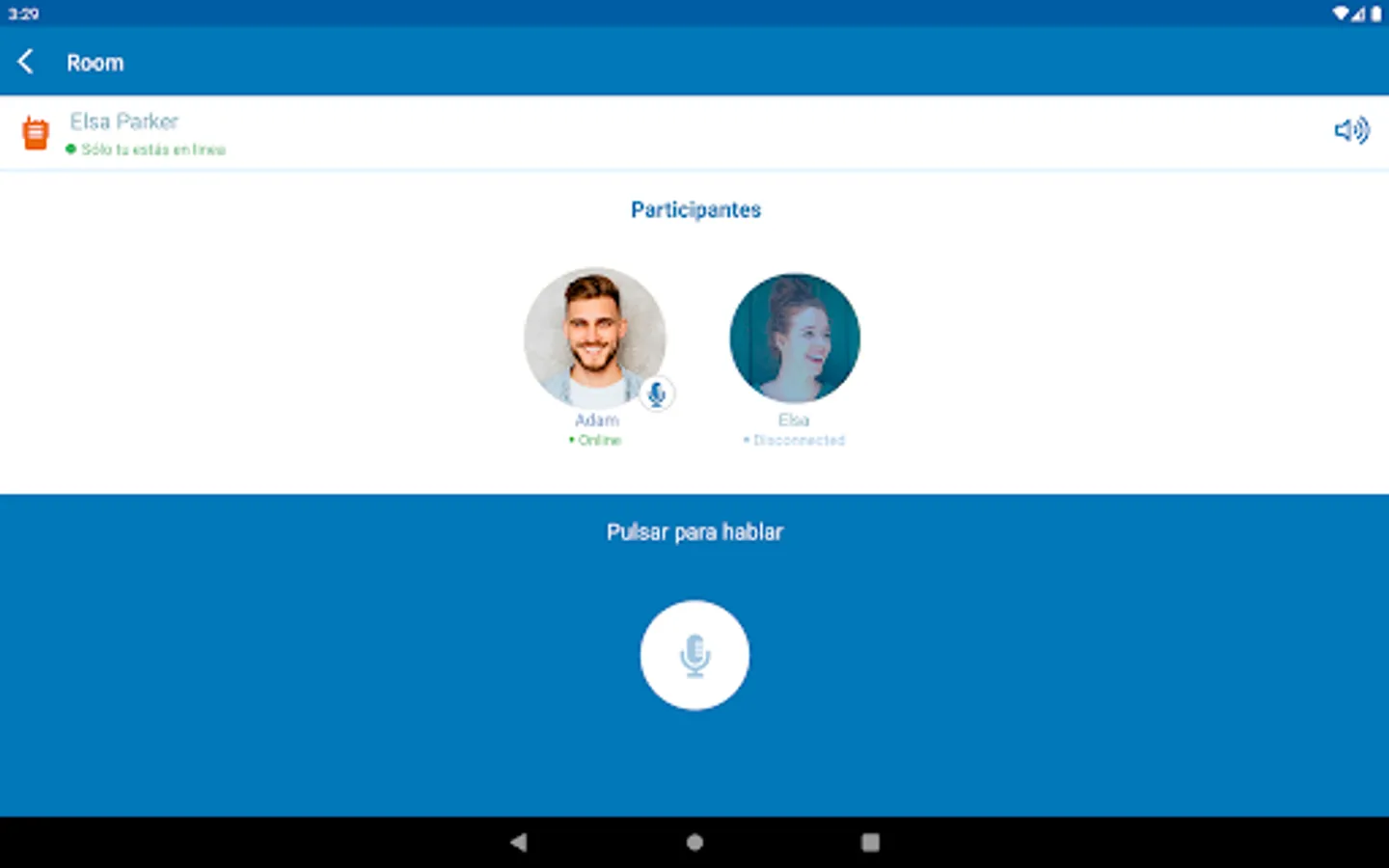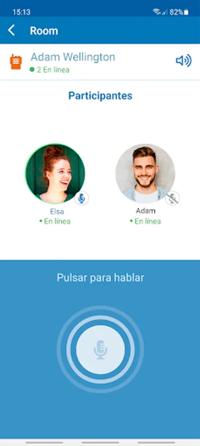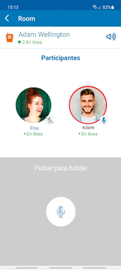It works like a walkie-talkie, you listen to what others who have joined the voice room say, until you press the button to speak yourself