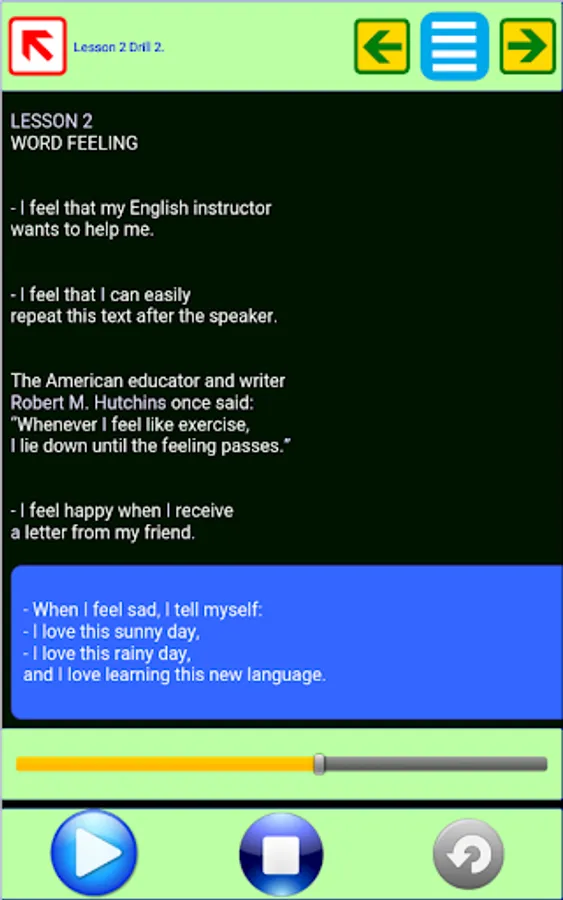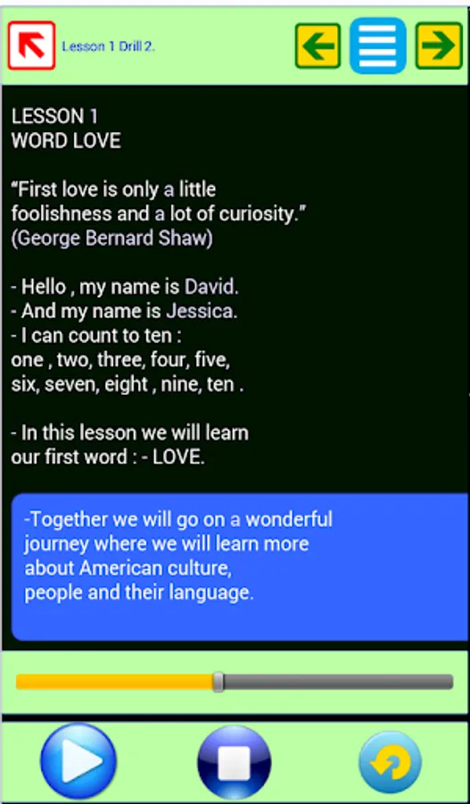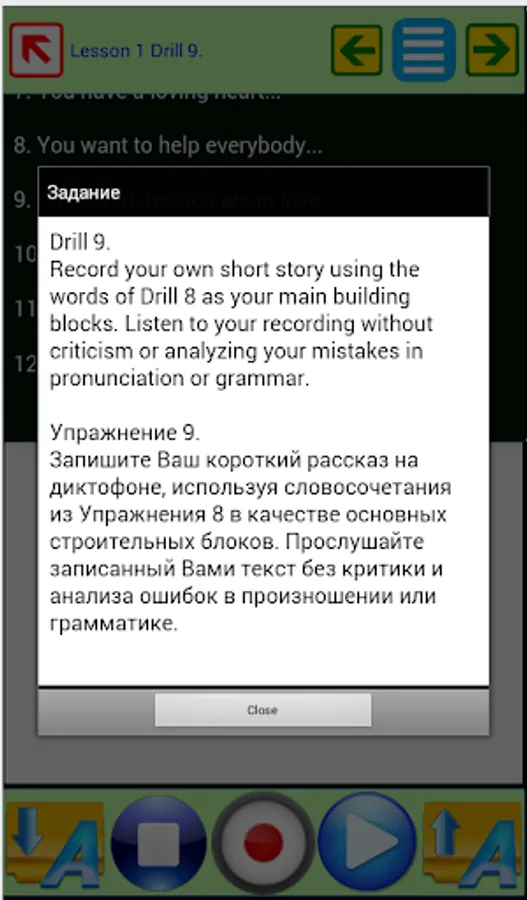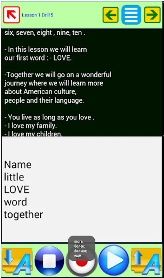 When you start repeating a new lesson in sync, you may skip individual words that you did not hear. This is normal.