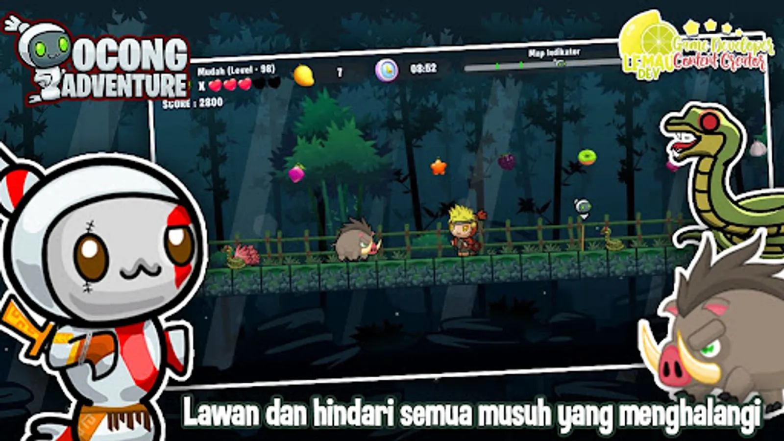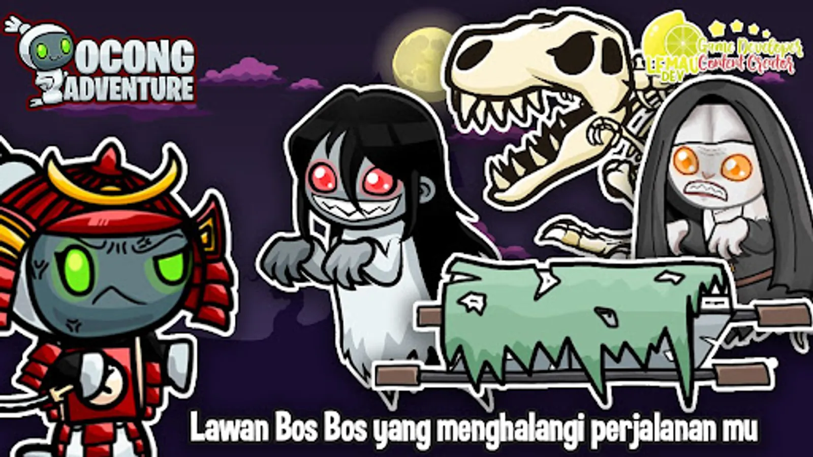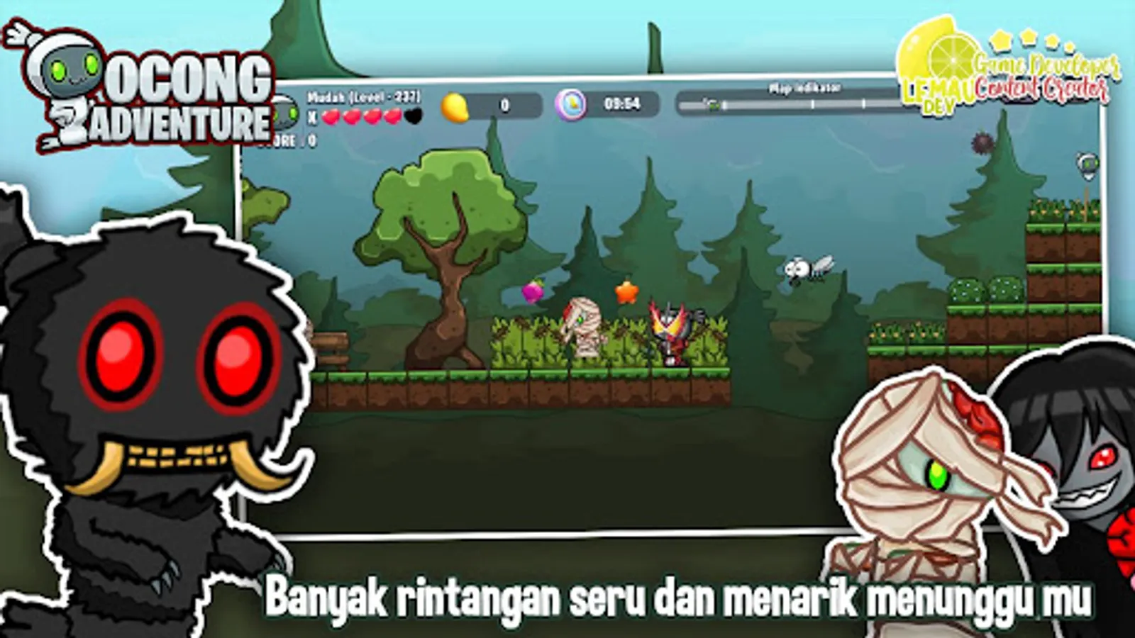 Pocong Adventure game is a cute pocong ghost adventure named mumu in a very dark forest. Let's help pocong 2d adventure wandering in the forest, Fight all enemies and collect all the fresh fruits that this game really likes.