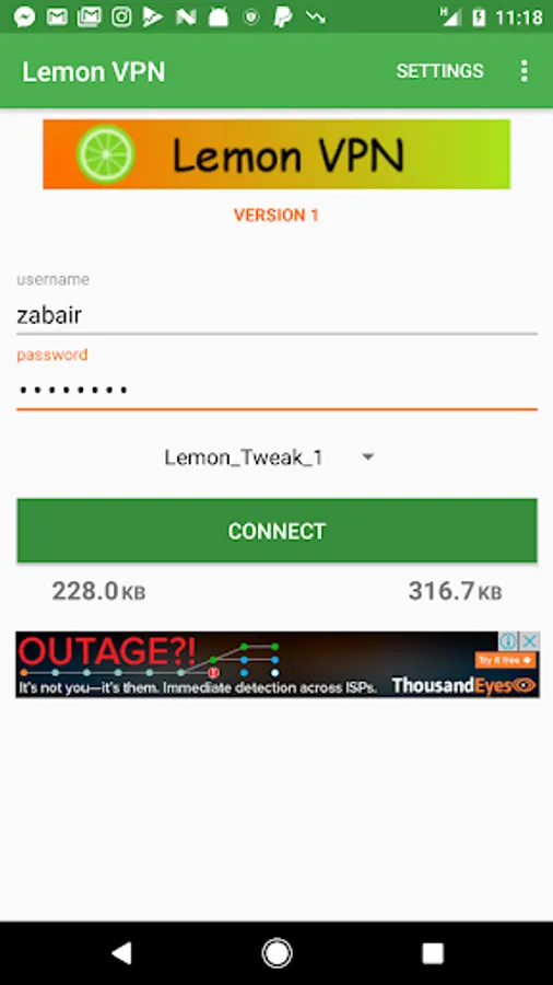 Connection through Lemon VPN allows you to change your Ip and Hide your real location while keeping your connection secure.