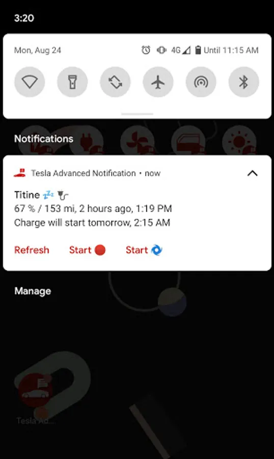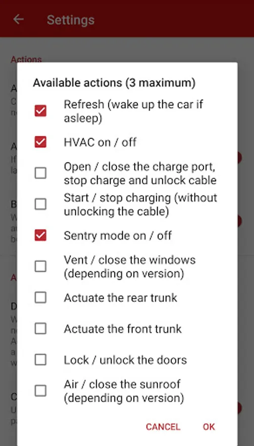 It also offer some shortcuts such as preheating the car, turn on HVAC, unlock the charge port quickly, manage Sentry mode. In addition, the actions are customizable and you can choose your shortcuts! You also can create shortcuts for these actions and place them on your main screen.