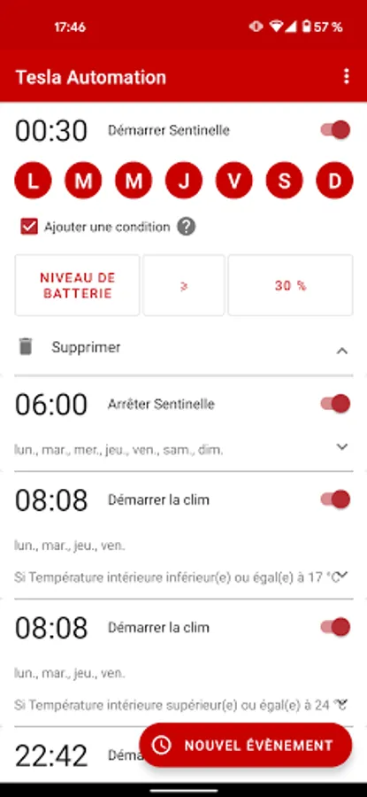 - Start Sentry Mode every night at 11:30 PM if the battery level is above 30%