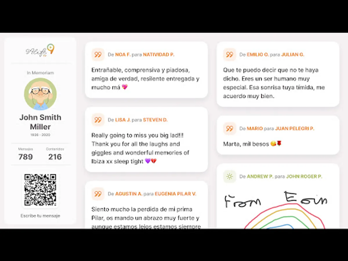 Once opened and as messages, photographs or drawings are published from any smartphone on the web "in memoriam", they will also appear on your Smart TV.