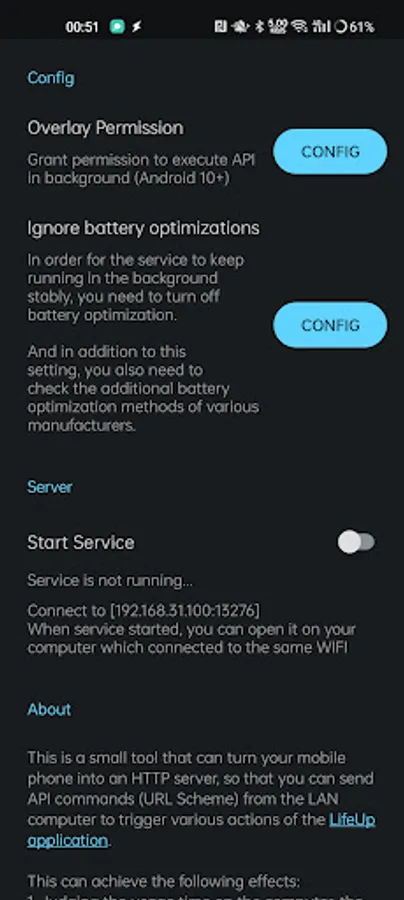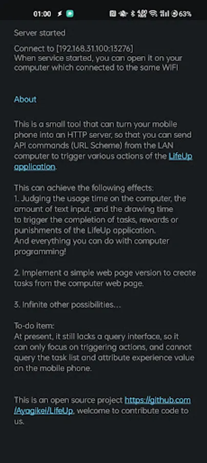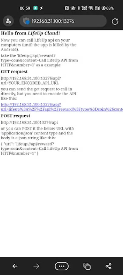So that you can send API commands (URL Scheme) from the LAN computer to trigger various actions of the LifeUp: Gamify To-Do & Habit app (https://play.google.com/store/apps/details?id=net.sarasarasa.lifeup).