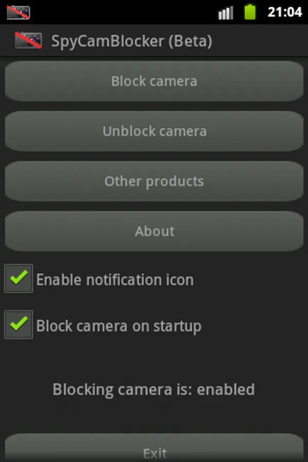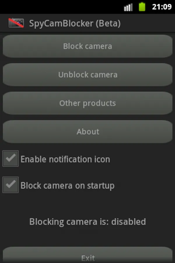 Currently, app requires permission to use camera. But it is only used to block it, so that no other apps can use it!