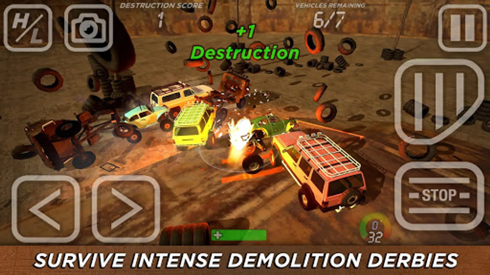 Huge and tough off-road levels, Diverse environments: muddy forest, scorching desert, freezing ice lake, bumpy hills, perilous badlands, and a demolition derby arena stadium with a drag strip nearby.