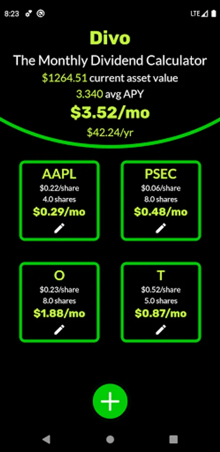 Divo is a monthly dividend calculator. Enter in the stocks you own, or want to own and it will do the rest to calculator your avg monthly dividends. It's time to calculate your slice of the pie with Divo.