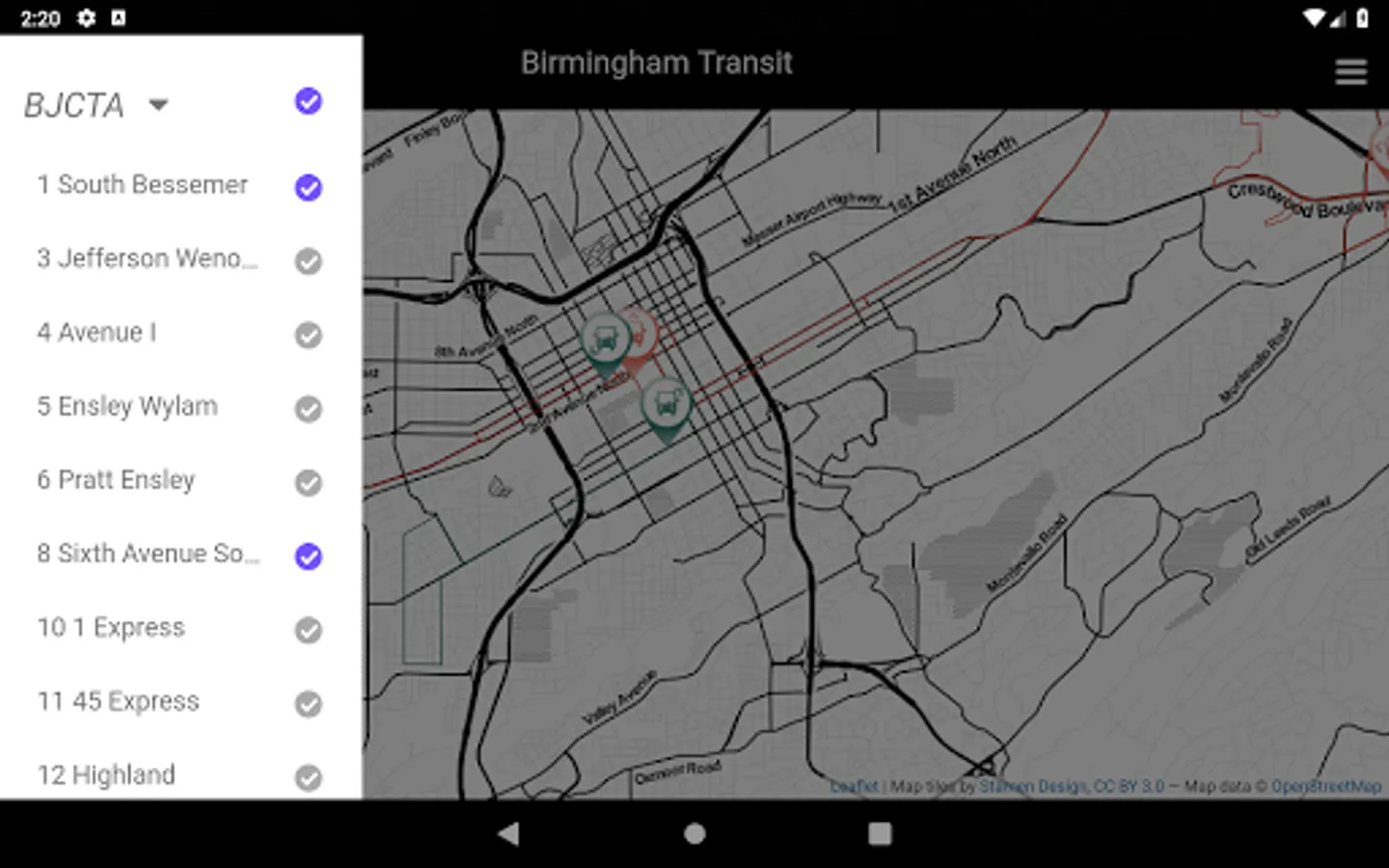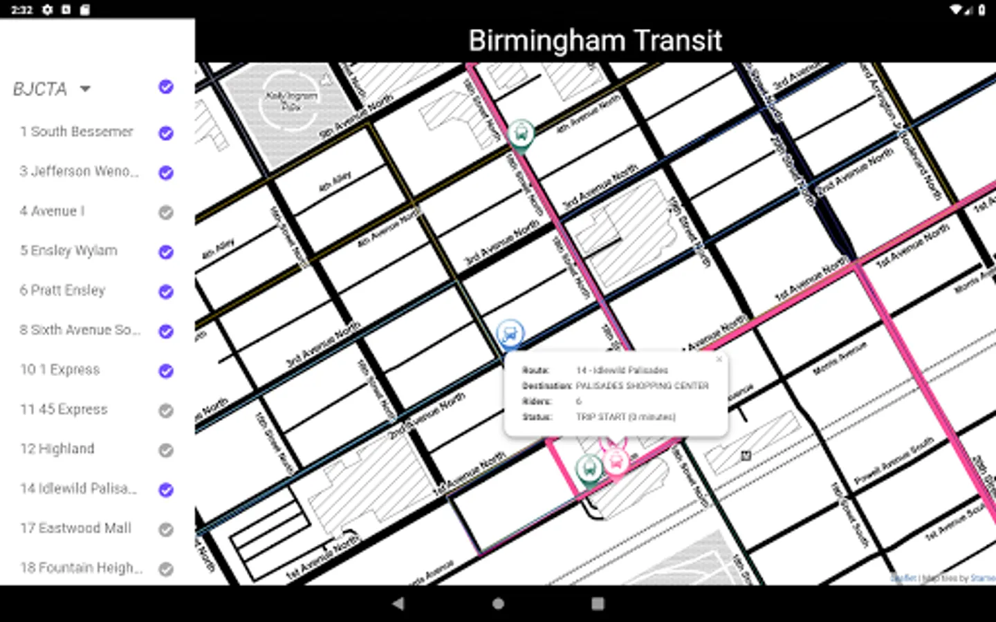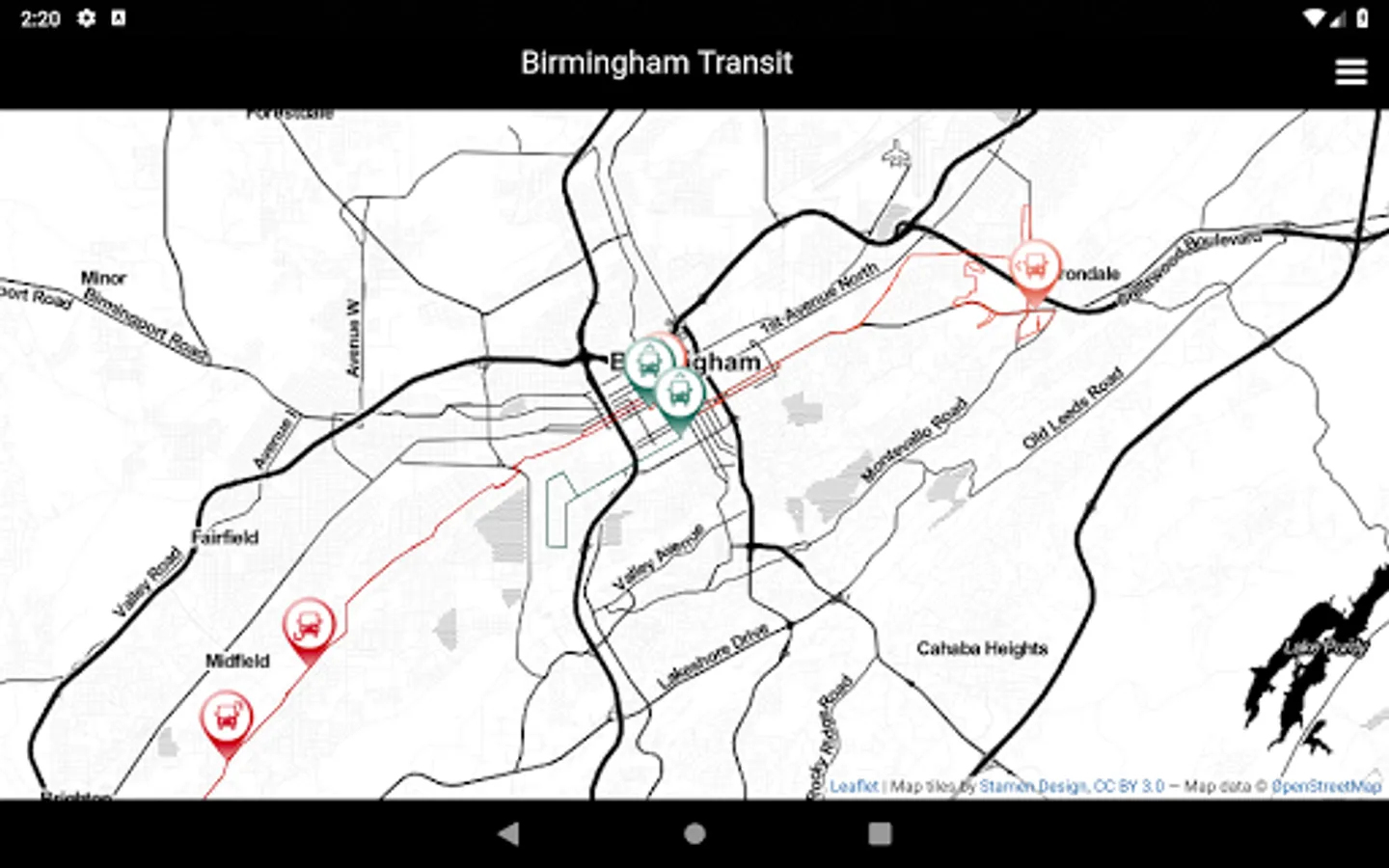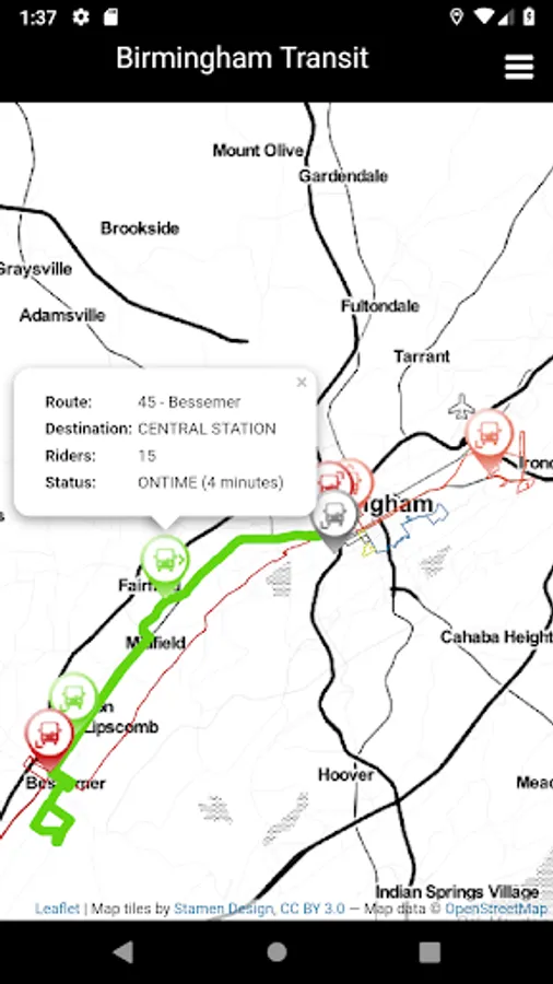 Montclair allows you to easily track the buses in real time for Birmingham, Alabama's public transit. It currently support tracking: