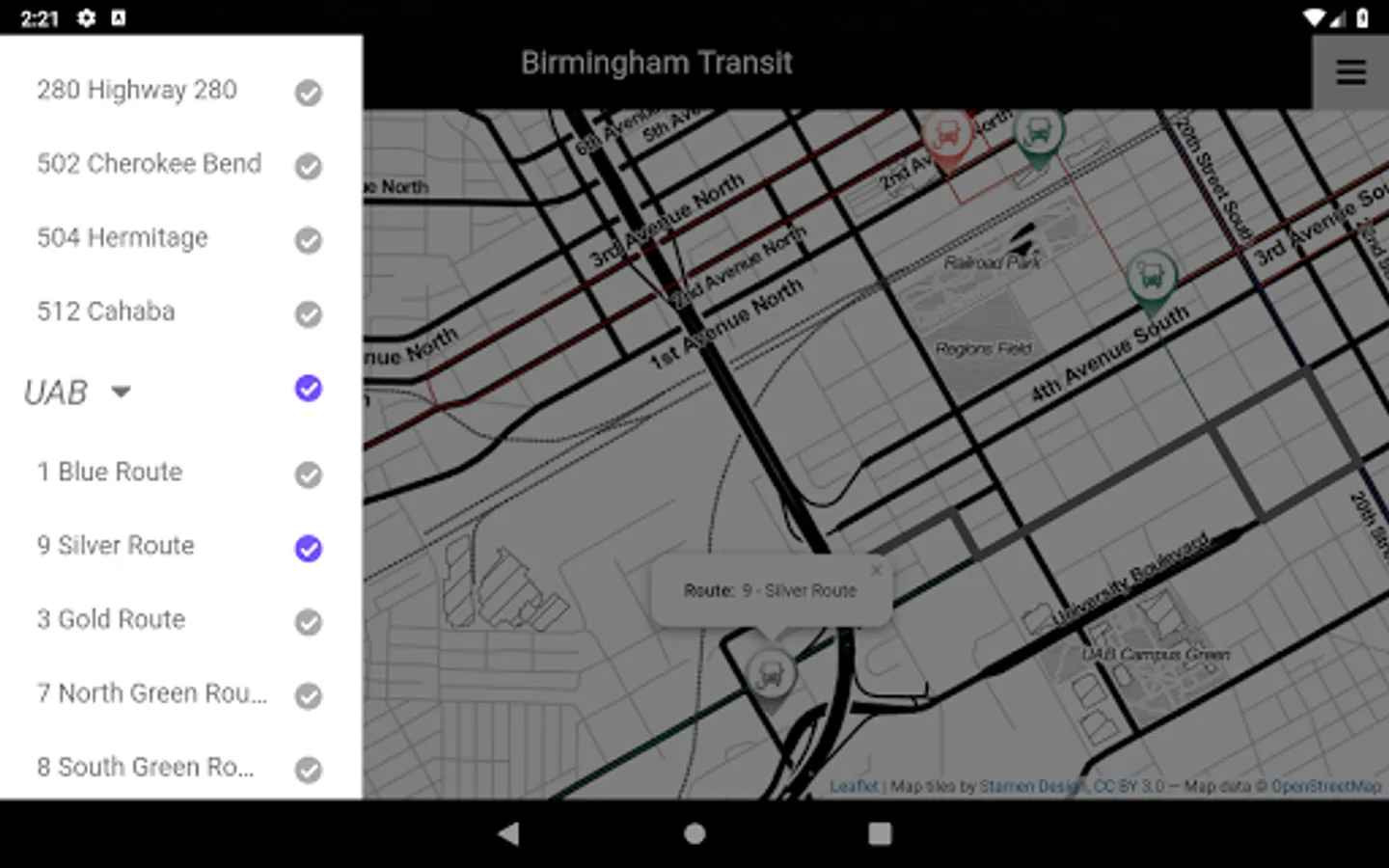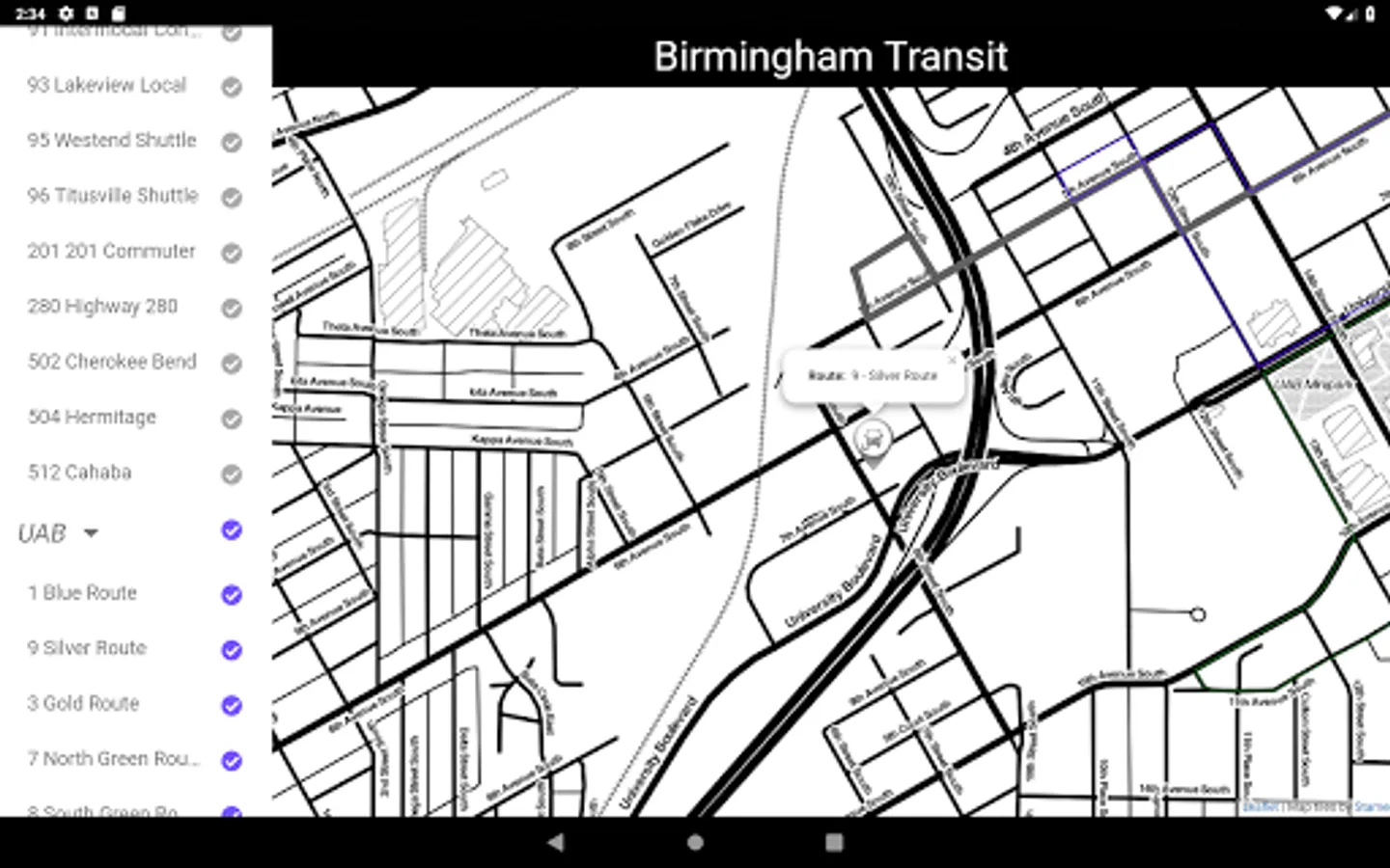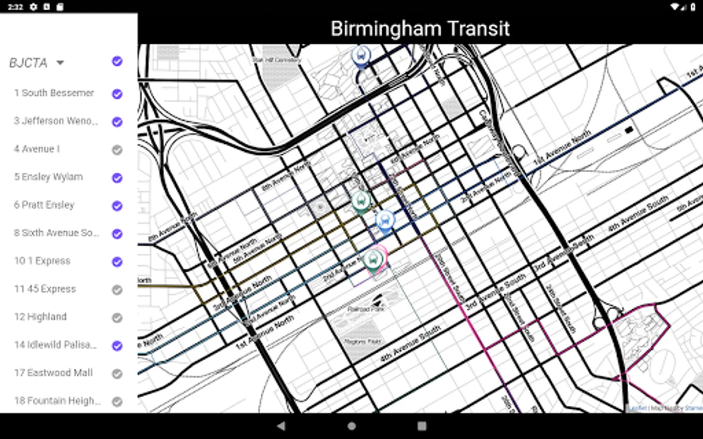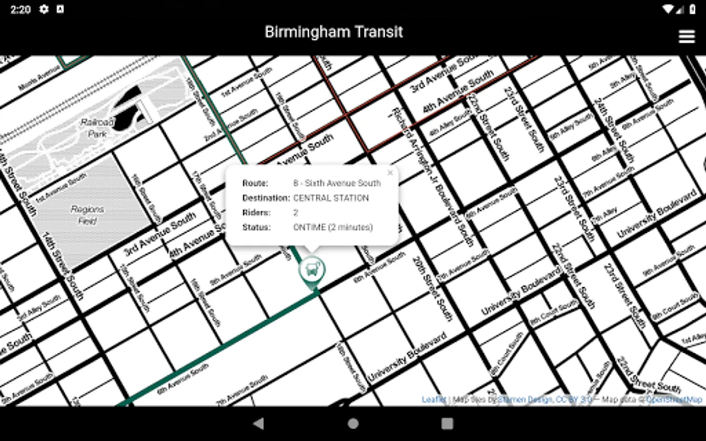 Montclair allows you to easily track the buses in real time for Birmingham, Alabama's public transit. It currently support tracking: