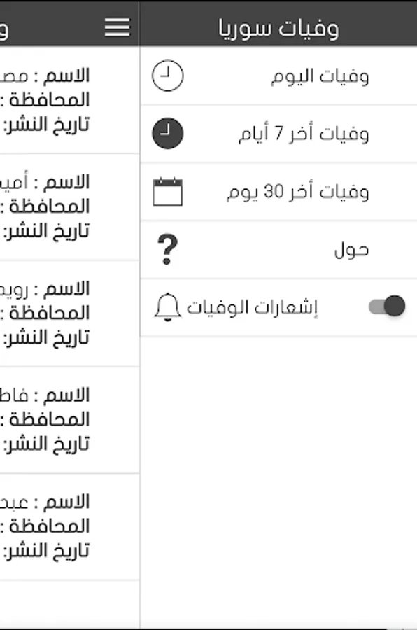 Application (mortality Syria - Syria Deseasds) means to publish news and cases of dead in the Syrian Arab Republic is quick and easy take into account the user experience.