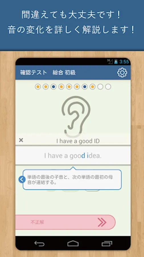 このアプリは、上記のようなルールをたった6つにまとめ、ドリル形式で集中的に学べる画期的なアプリです。6つのルールをマスターすれば、リスニングはできるようになります!