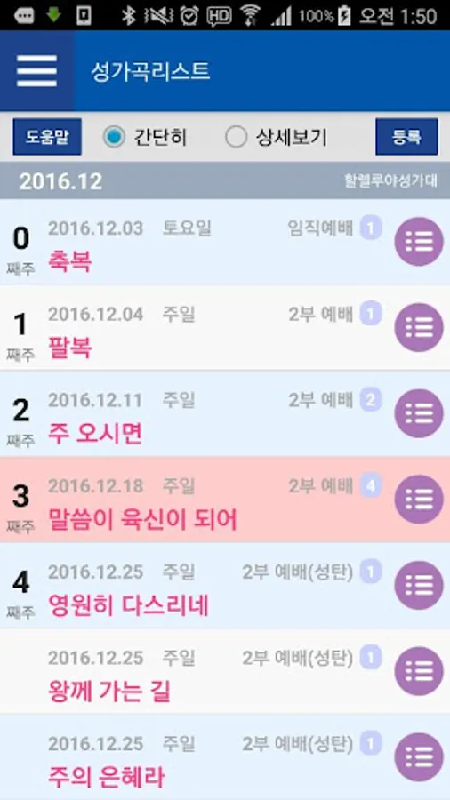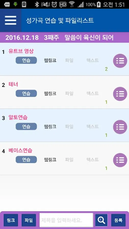 Registration on site or file that can be registered each week and practice seonggagok to help the practice of members.