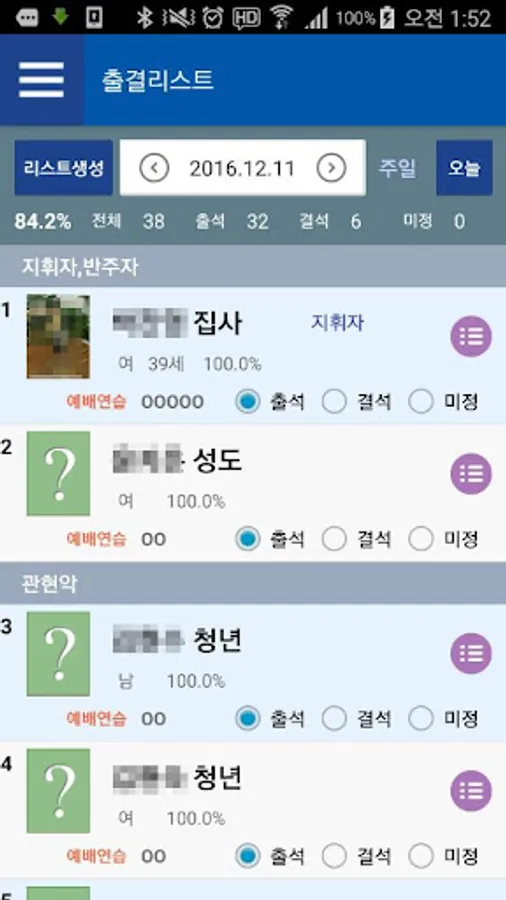 Attendance can manage the practice of worship, the afternoon practice, during the week, such as exercise and manage up to three per week.