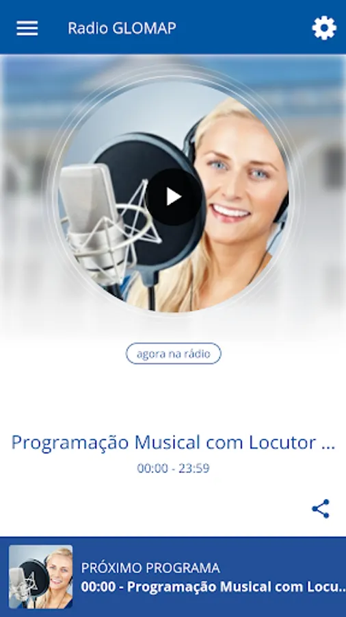 Aplicativo oficial da Radio GLOMAP para escutar a transmissão no seu celular