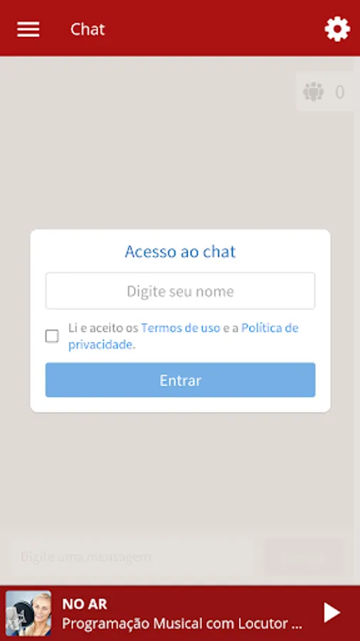 - Entrar na sala de bate papo da rádio