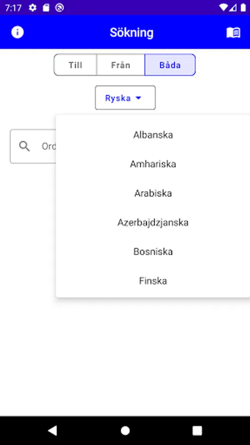This app is intended to facilitate the use of Lexin (http://lexin2.nada.kth.se). It translates words to and from Swedish of the following languages: Albanian, Amharic, Arabic, Azerbaijani, Bosnian, Finnish, Greek, Croatian, Northern Kurdish, Pashto, Persian, Russian, Serbian (Latin), Serbian (Cyrillic), Somali, Spanish, Swedish , Southern Kurdish, Tigrinya, Turkish. Please note that images from Lexin cannot be displayed in the app as these are of a format not supported by the mobile phone.
