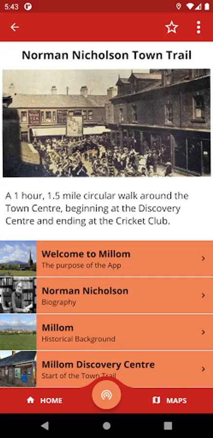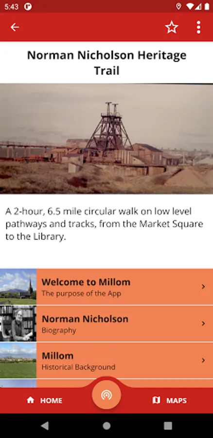 The app is Bluetooth Beacon and GPS enabled. This is to show you relevant content based on your location along the trail and immediate area.