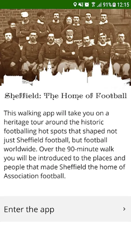 Between 1857 and 1889 Sheffield had 95 football clubs and the app explores locations associated with these early clubs. While visiting the ten stops over the 4.7 mile walk you will be introduced to the places and the people that made Sheffield the home of Association football.