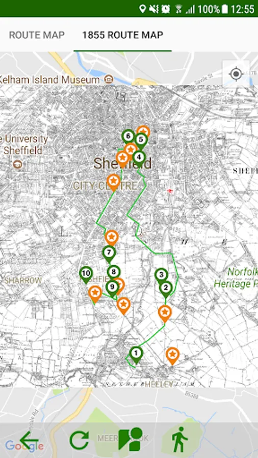 The app includes audio commentaries, so that you can listen as you walk or simply sit and enjoy in your armchair. As you reach key points along the walk content in the app will be triggered automatically. You will also be able to follow your location on an 1855 map, which will give you a sense of what Sheffield was like at that time.