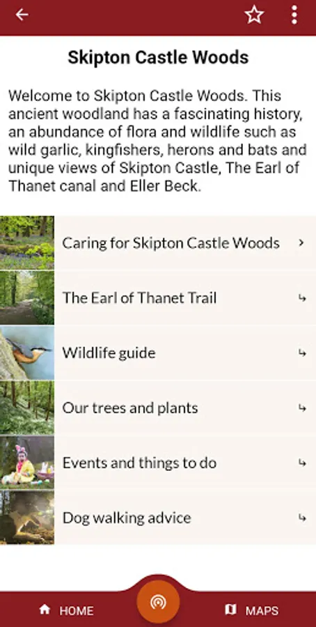 Visitor guide for Woodland Trust’s Skipton Castle Woods. Includes audio trail guide, wildlife guide and accessibility information.