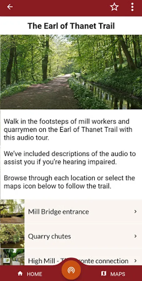 The app is GPS enabled. This is used to show you relevant content based on your location. Please note that you do not have to be at Skipton Castle Woods in order to access any of the content in the app.
