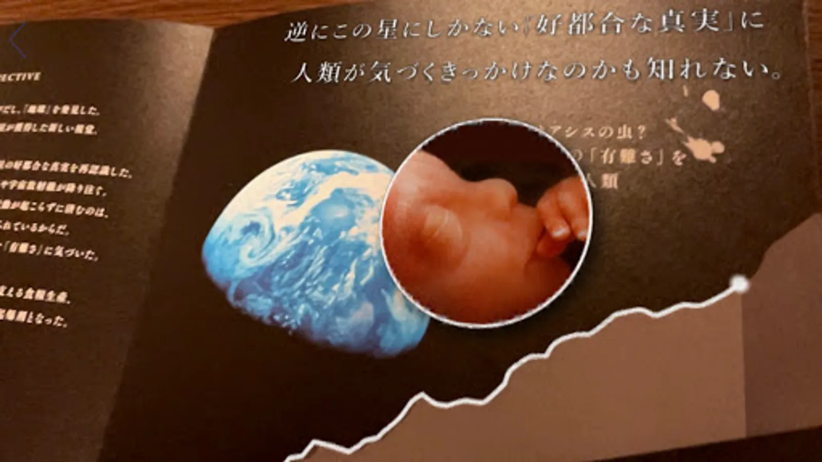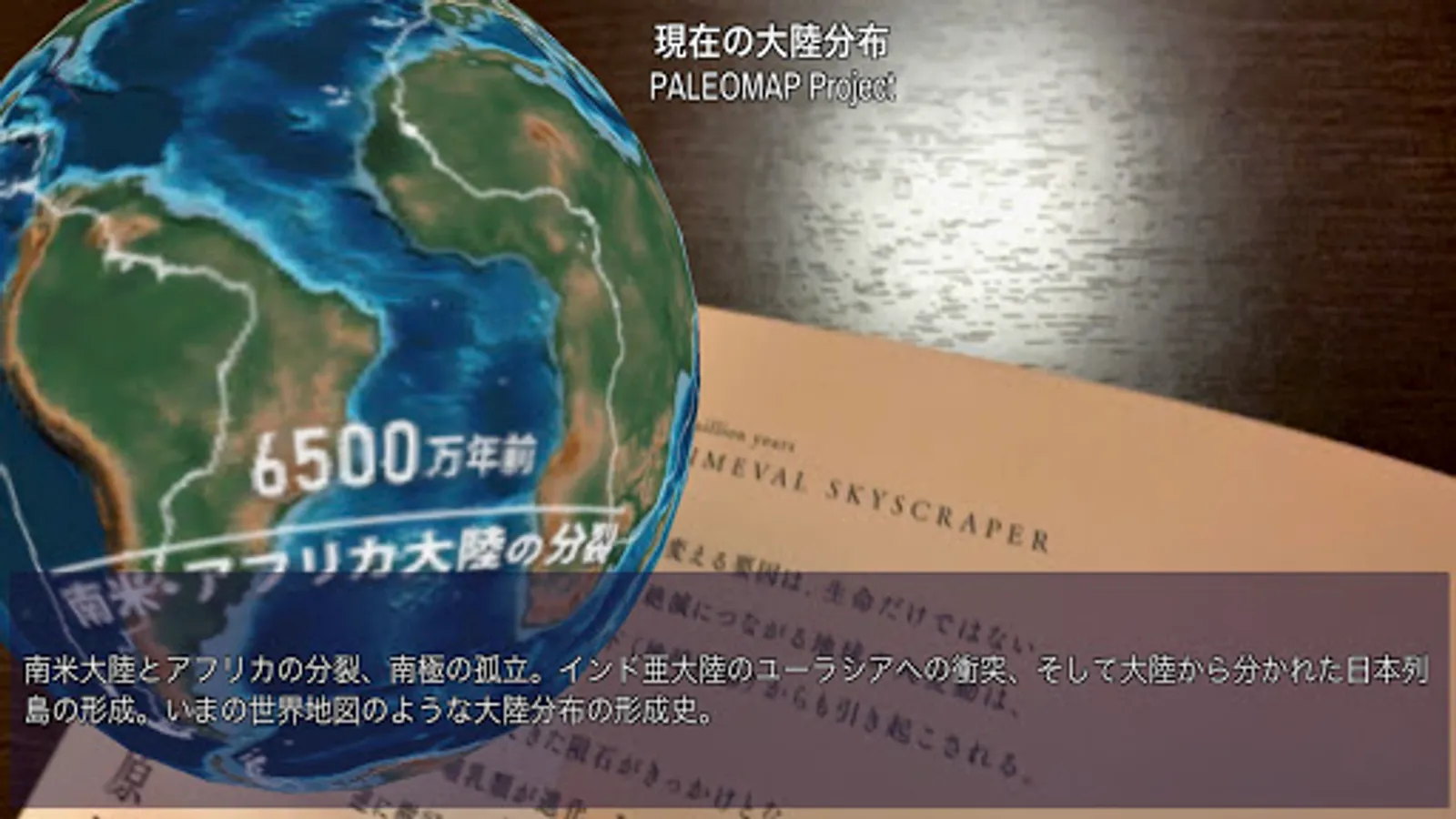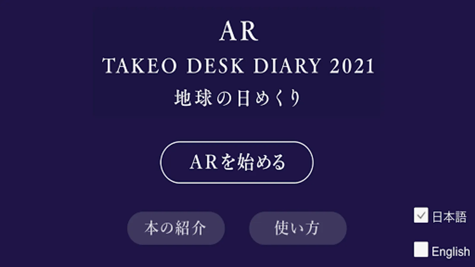 This app was developed to be responsible for the AR function of Takeo Desk Diary 2021 "Earth Chronicle". However, the contents displayed in AR (continental drift, human movement, global warming, etc.) can be enjoyed by users who do not have this magazine by clicking the'pop-out earth button'on the top page of this app.