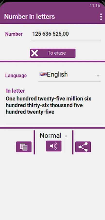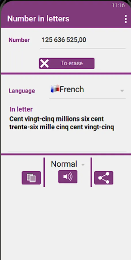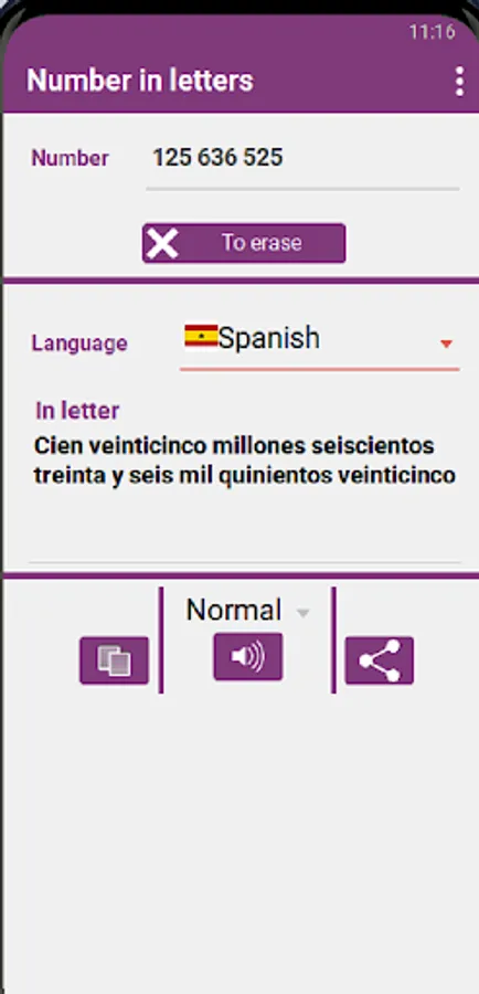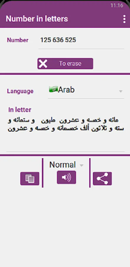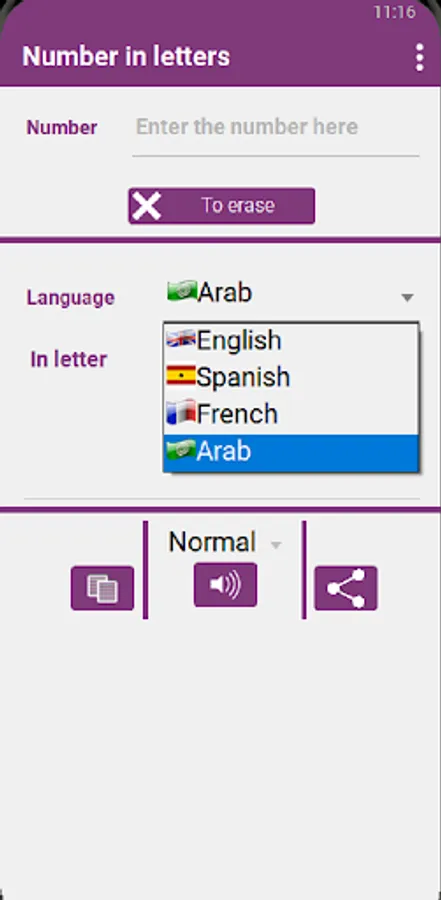 Convert all your numbers into letters in French, Spanish and Arabic and English without an internet connection.