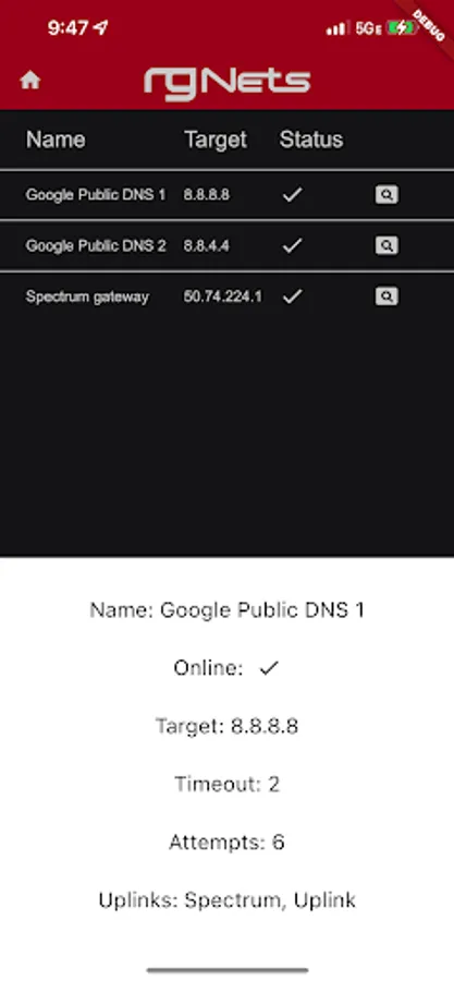 This app is a simplified interface for ping targets within the RG Nets revenue eXtraction gateway (rXg). The app uses the RG Nets rXg RESTful API. The RG Nets rXg must be deployed on a publicly accessible IP, associated with a public DNS record and configured with a valid SSL certificate for this app to function.