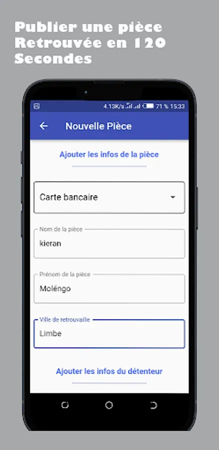 LostPieces was born in a context where the establishment of official documents such as CNI (National Identity Card), passports, driving licenses, etc. has become very complicated. From this fact, it is very painful to renew them.