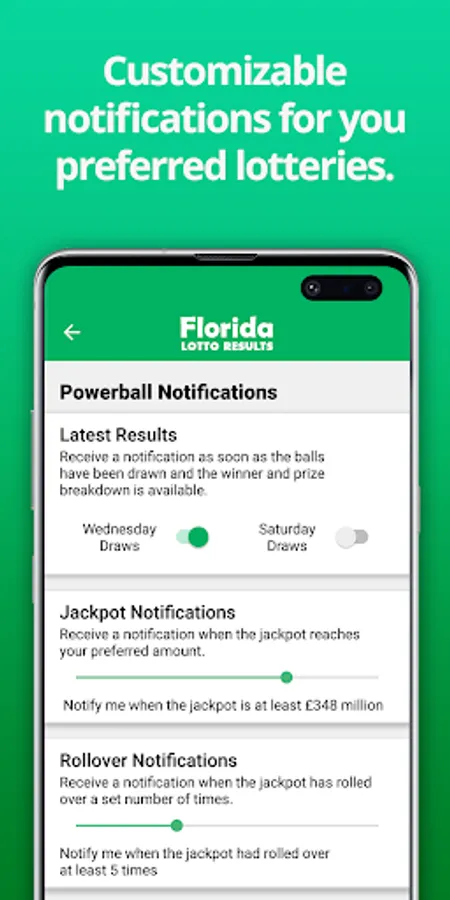 Get notified instantly when the latest lottery results and prize breakdowns become available. The App allows you to customise notifications for specific lottery games and you can also choose which days of the week you play. Want to know when the jackpot has rolled over or has reached a certain amount? Just head to the Notification section of the app to set up your alerts. There is also the option to set notifications at times that suit you - great for reminding you to purchase tickets before the draw.
