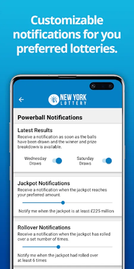Get notified instantly when the latest lottery results and prize breakdowns become available. The App allows you to customise notifications for specific lottery games and you can also choose which days of the week you play. Want to know when the jackpot has rolled over or has reached a certain amount? Just head to the Notification section of the app to set up your alerts. There is also the option to set notifications at times that suit you - great for reminding you to purchase tickets before the draw.