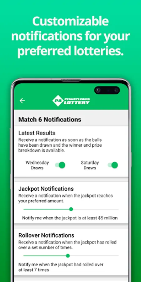 Get notified instantly when the latest lottery results and prize breakdowns become available. The App allows you to customise notifications for specific lottery games and you can also choose which days of the week you play. Want to know when the jackpot has rolled over or has reached a certain amount? Just head to the Notification section of the app to set up your alerts. There is also the option to set notifications at times that suit you - great for reminding you to purchase tickets before the draw.