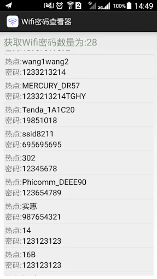 Read the system /data/misc/wifi/wpa_supplicant.conf or /data/misc/wifi/WifiConfigStore.xml (Android Oreo) file, which contains the password information