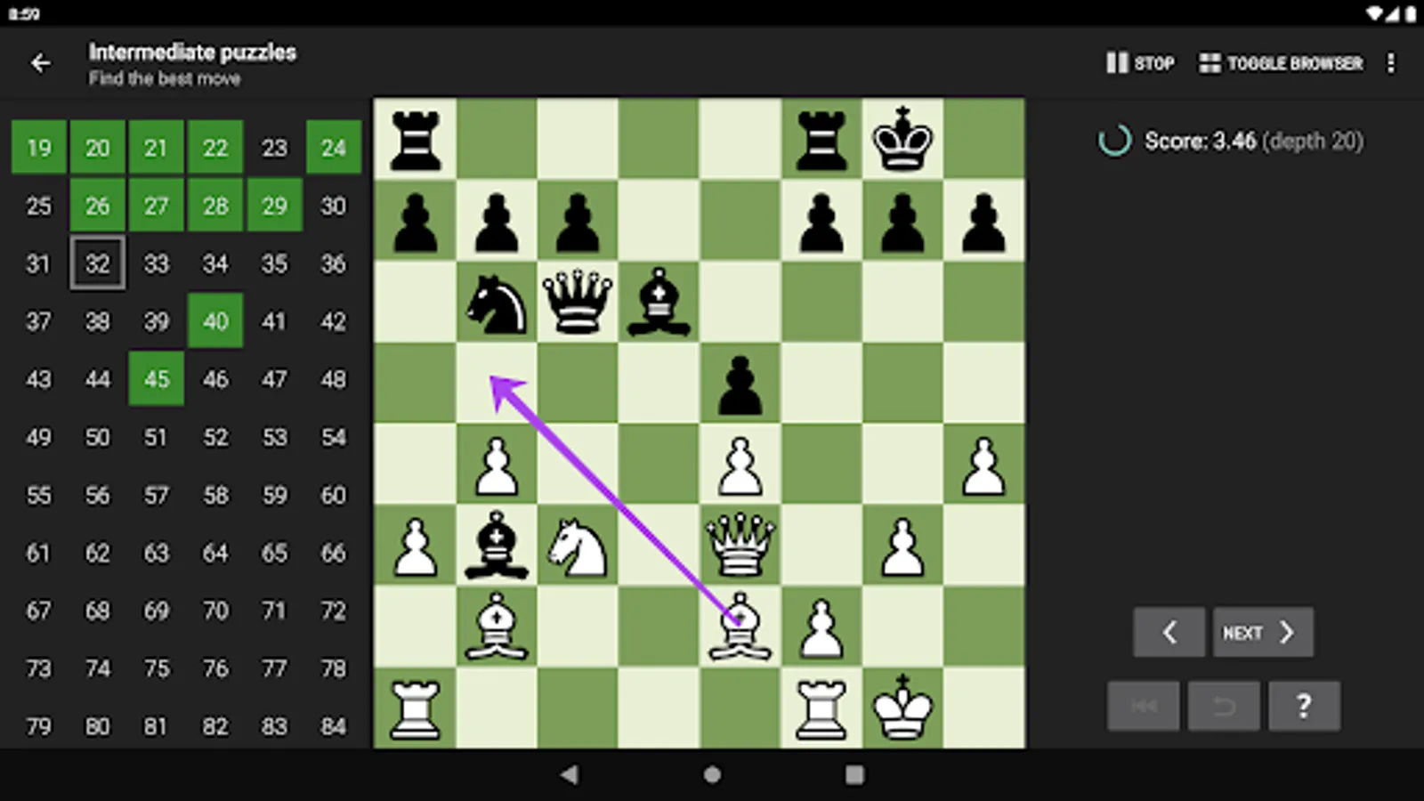 - Use the "Progress" mode to get random problems of your level and know your Elo rating