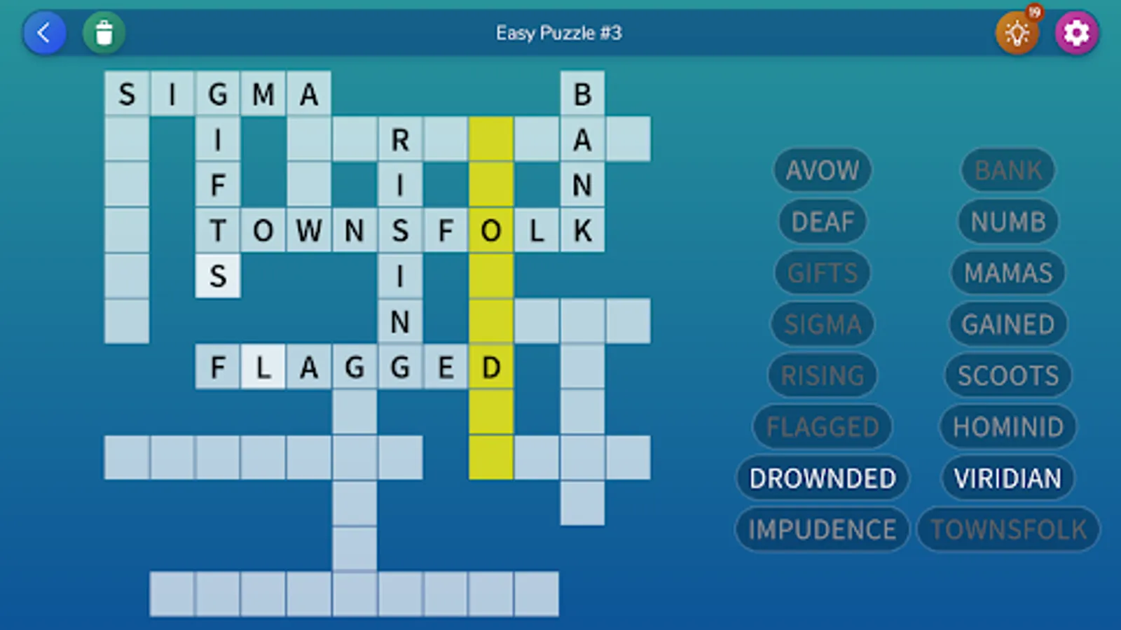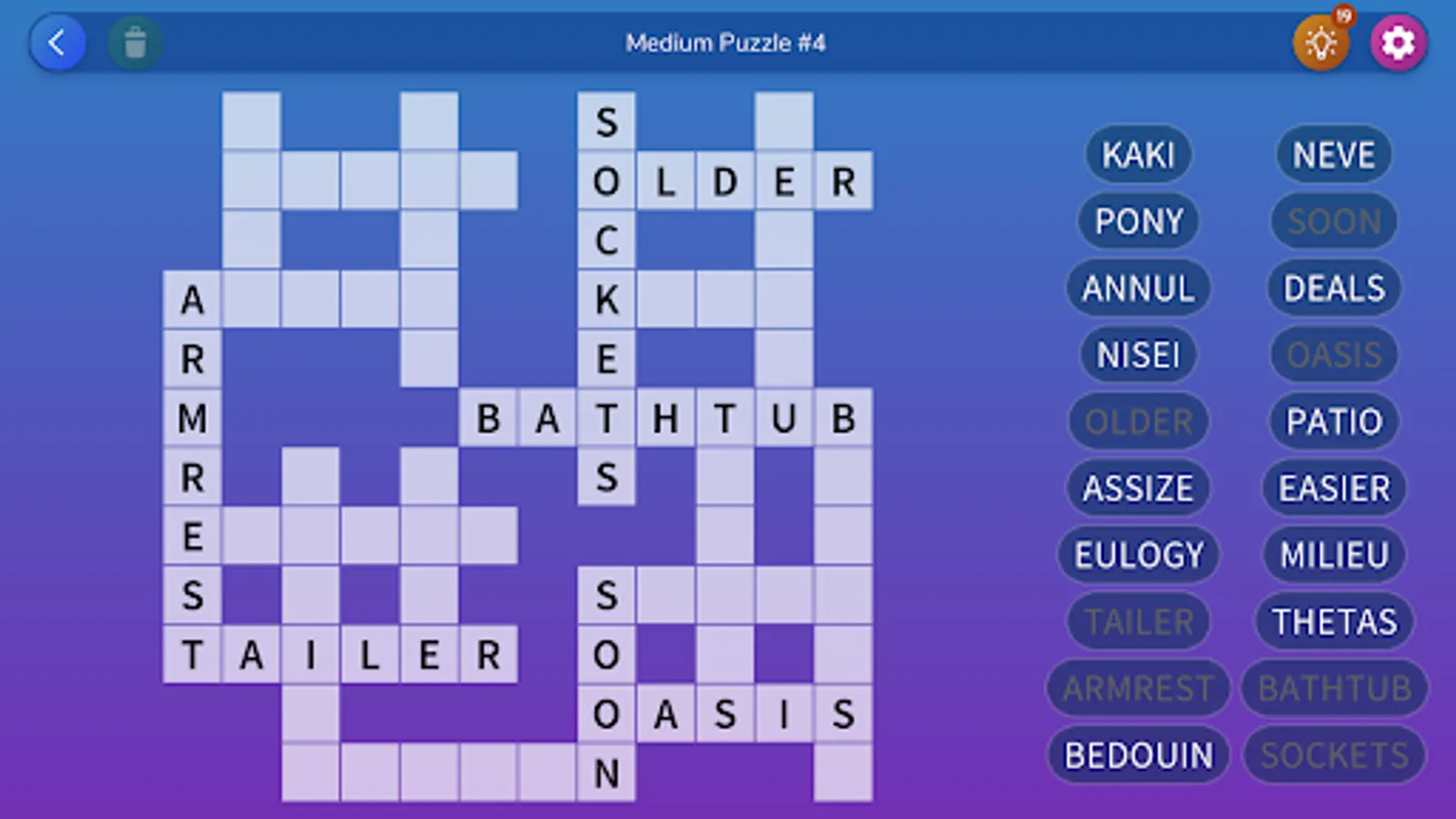 You are given a list of words, and your goal is to place them all in the grid. However, there is only a single possible solution!