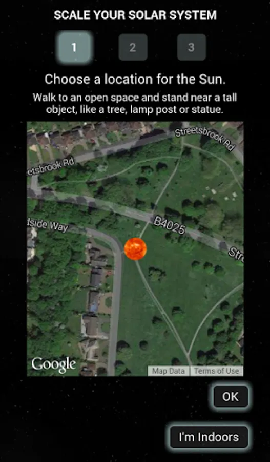 If you are indoors or do not have a GPS you can use one of the preset scales. (But remember, you'll gain a much better understanding of distance by walking through the virtual solar system.)