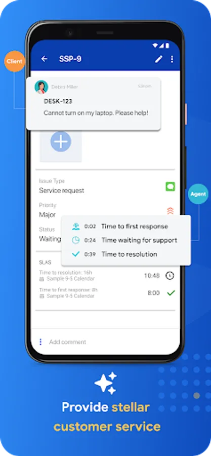 Provide stellar customer service: cut delays with streamlined communication between clients and service desk agents.